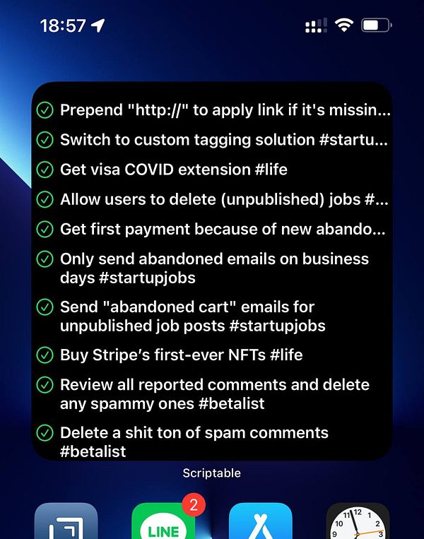 Prototype Scriptable widget that shows my most recently completed WIP todos #wip