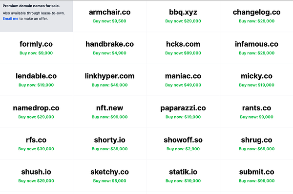 Add prices and "Buy it now" buttons with Escrow integration names.marc.io #domains
