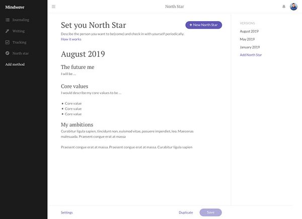 prototype & design for 'North Star'. Set your north star, mail it yourself every 1th and re-write every 3-6 months