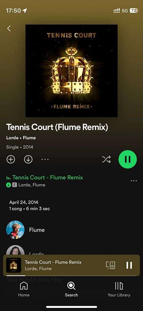 Finally listen to Flume’s tennis court on Spotify now that it’s on Spotify after _9_ years #life
