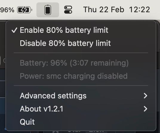 Force Macbook charging limit to max 80% like new iphones with github.com/actuallymentor/bat… #life