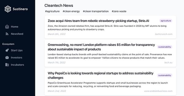 extracted cleantech company names from news using AWS comprehend #sustinero