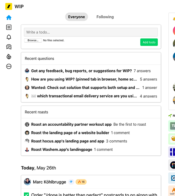 For that we're experimenting with a weekly community digest sent via email. And also making the homepage more interesting to you by letting you follow specific individuals rather than every single WIP member.