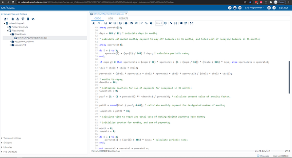 Got the CFPB's example SAS code to calculate the 'minimum payment estimate' working in SAS Studio. #cleanexam