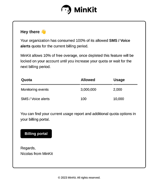 Handle billing alerts for multiple types of quotas #minkit