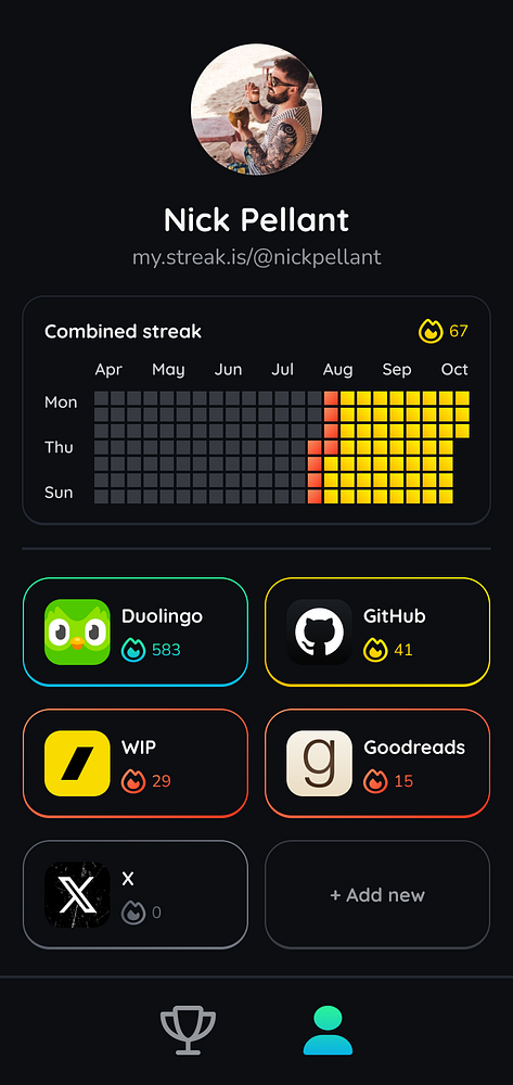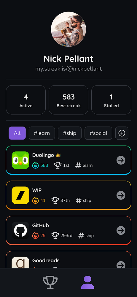 Designed mobile profile view #streaky