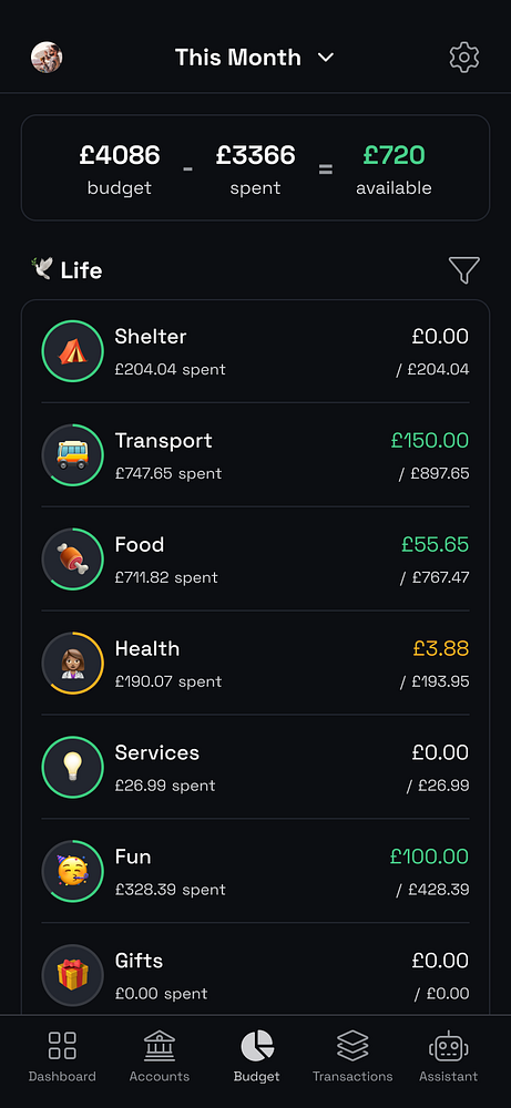 Designed a budget category screen #money
