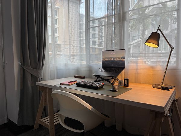 Set up my desk in the new Airbnb #life