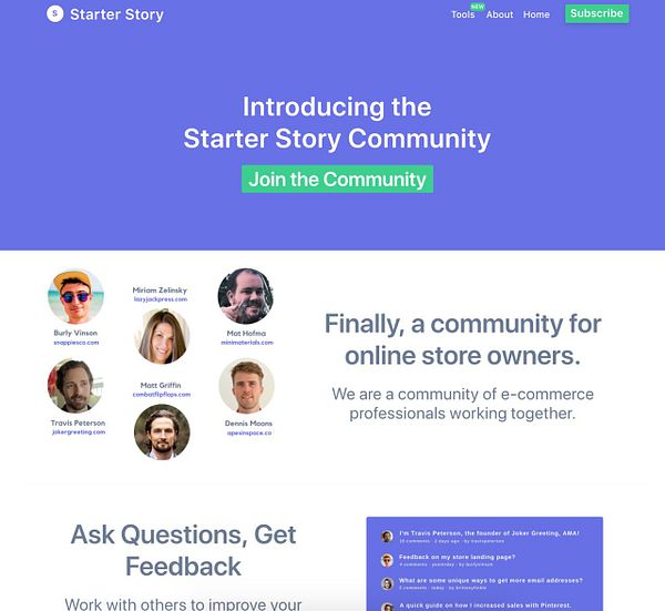 first pass on community landing page #starterstory
