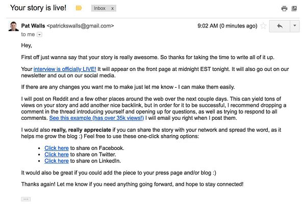 automate published email #starterstory