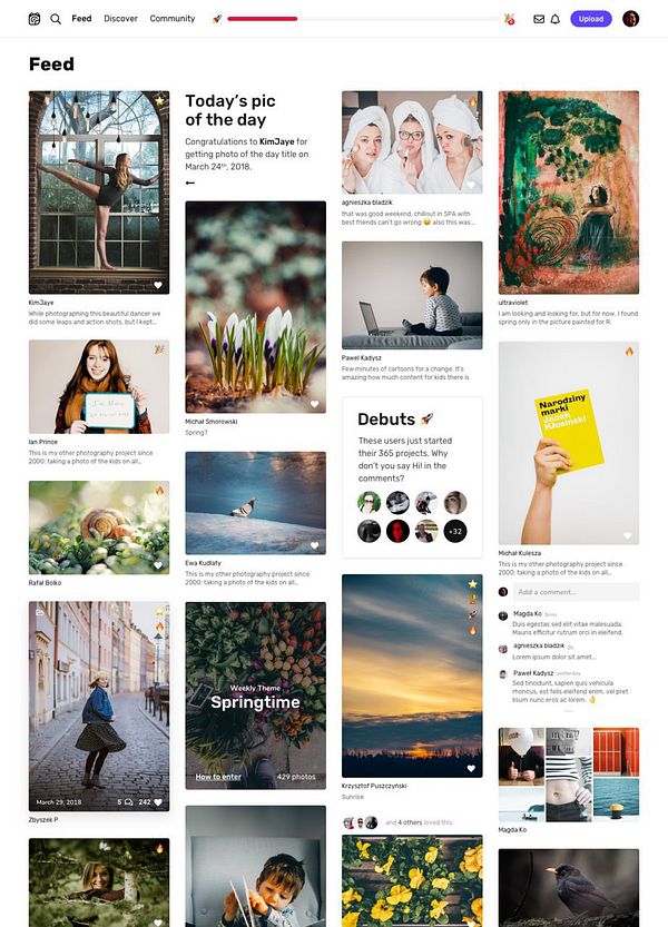 work on the photo grid, and main feed