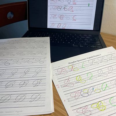 - You showed up for the offline stuff too: first day of Spencerian calligraphy class, then kept up with homework sessions through the month.