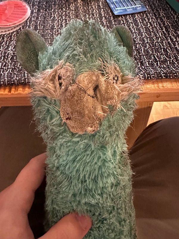 #life Learn how to sew small holes so I can fix my dogs first and favorite toy that she cuddles with every night because they no longer produce it