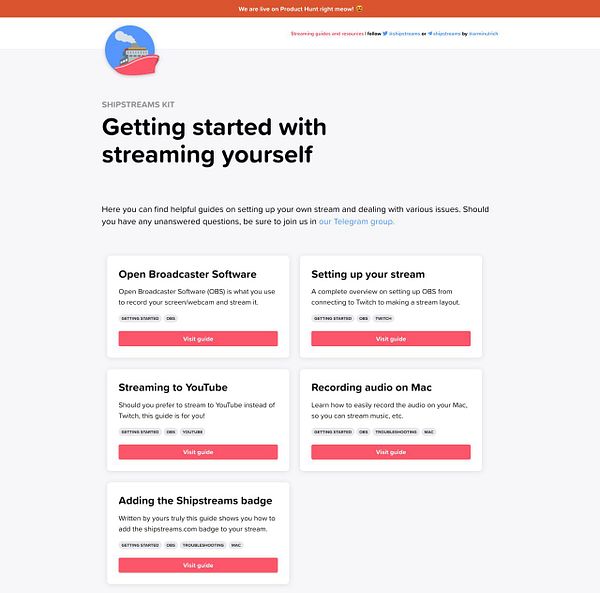 Build resources and guides page for shipstreams.com /cc @arminulrich