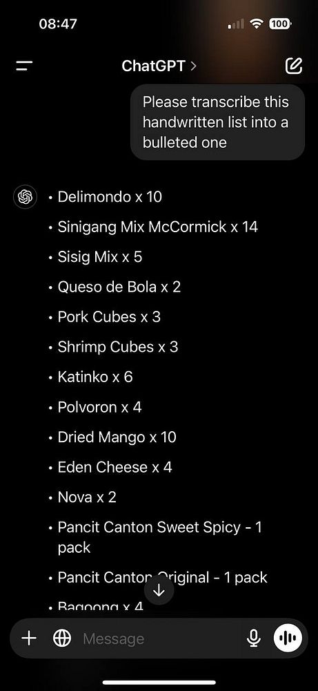 #life Have ChatGPT transcribe my wife’s handwritten shopping list and see it get it 98% right