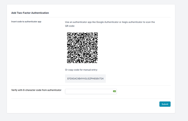 Add working 2FA to #shipnix, working on the backup codes flow next so users are not f-ed if they lose their authenticator