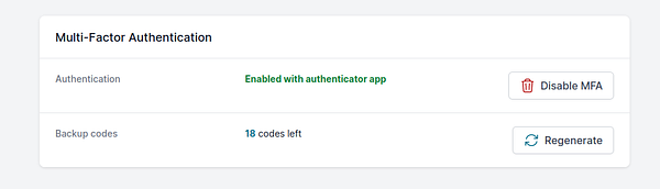 Add one-time use backup codes for MFA authentication so users can log in if they have lost their authenticator device #shipnix