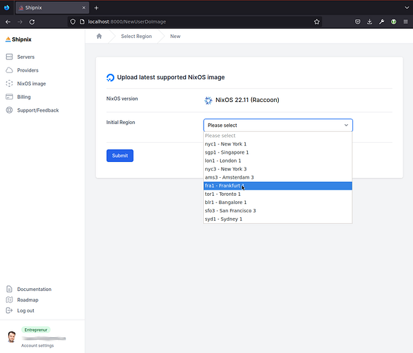 Make a simple form in admin dashboard so I can easily set the current supported NixOS version #shipnix