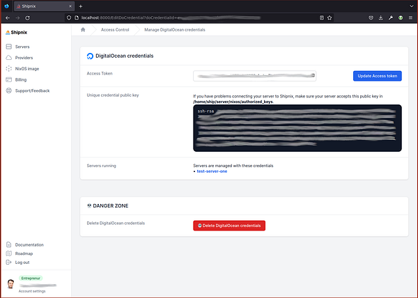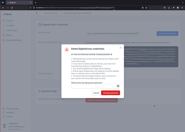 Touch up on DigitalOcean Credential dashboard and make the consequenses of deleting very clear #shipnix
