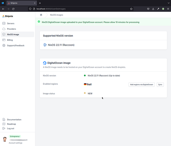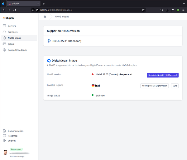 Create self-serviced flow for upgrading current supported NixOS image from user dashboard #shipnix