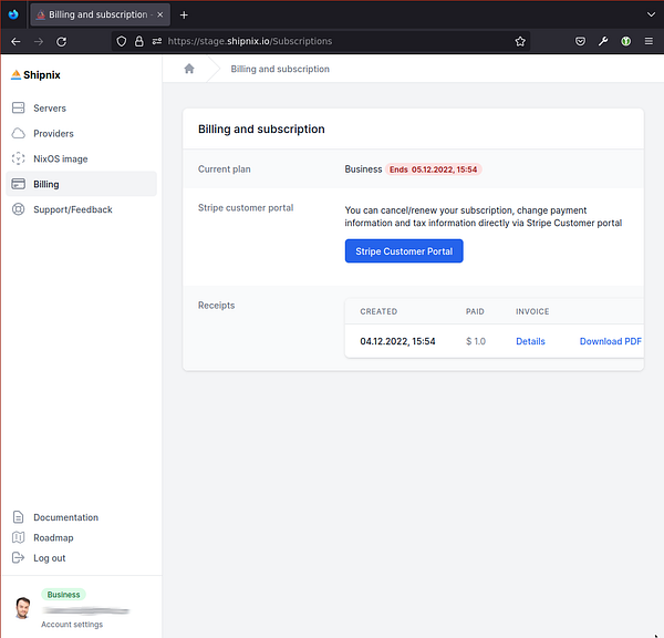 Move Stripe testing to staging server and test cancellation of a daily subscription and wait to see if it acts like expected tomorrow #shipnix