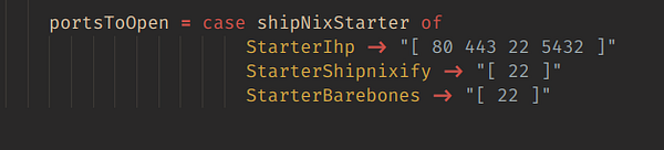 Make ship-nix starters firewall only open the ports they actually need #shipnix