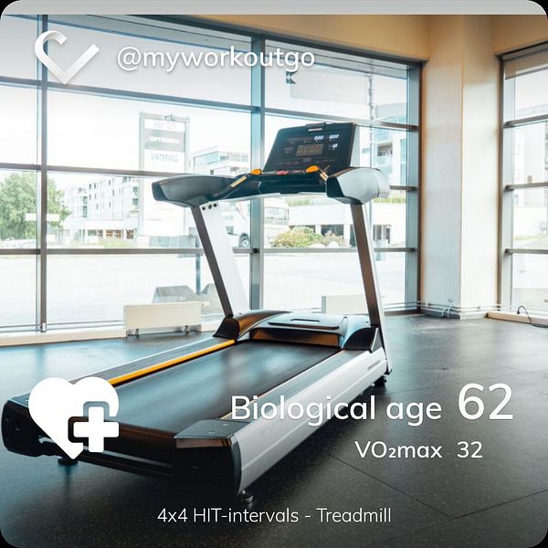 4x4 HIT treadmill. Still bio age 62, but feel considerably better #life