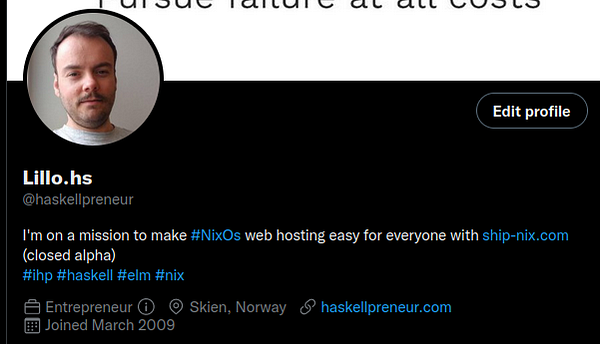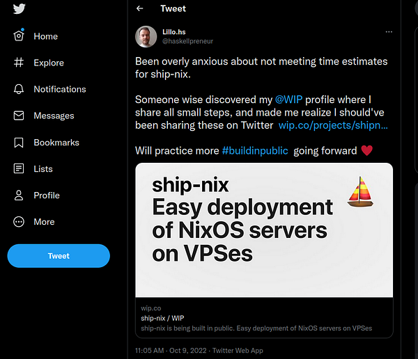 Realize I should have cross-posted WIP entries on Twitter instead of burying myself underground #shipnix twitter.com/haskellpreneur/st…