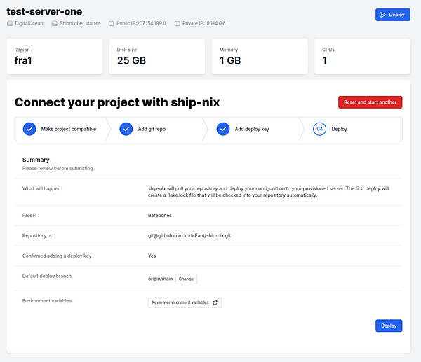 Let users review environment variables before deploying an exisiting project #shipnix