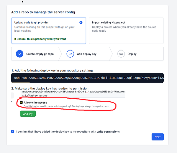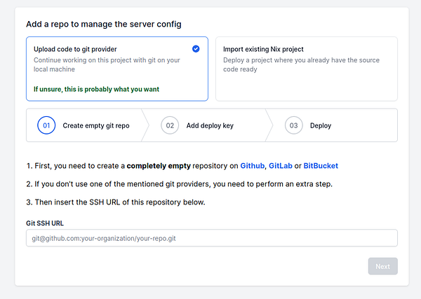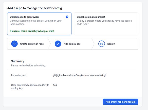 Greatly improve flow for uploading provisioned server code to a git repo, splitting it up in simple steps #shipnix