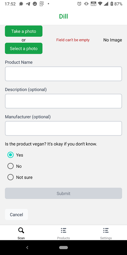 Functionality for submitting product in mobile app #dill