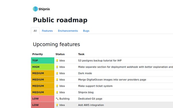 Add different feature types so I can track bugs and enhancements, not just features on the public roadmap + add filter nav #shipnix
