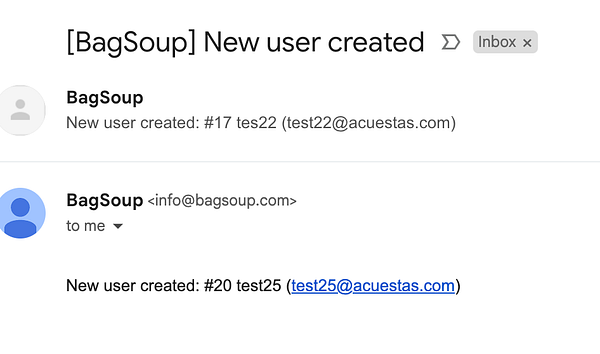 Get an alert when a new user registers #bagsoup