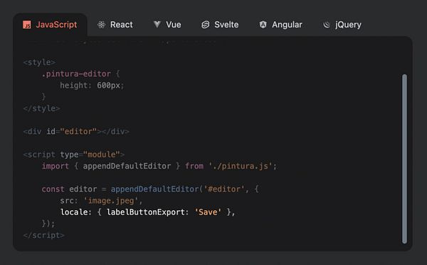 #pintura create cross framework code snippets for editor properties page