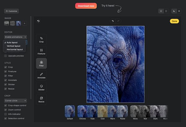 get to google spot 1 for keywords "javascript image editor"