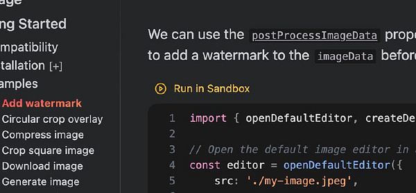 add Codesandbox button to example code snippets