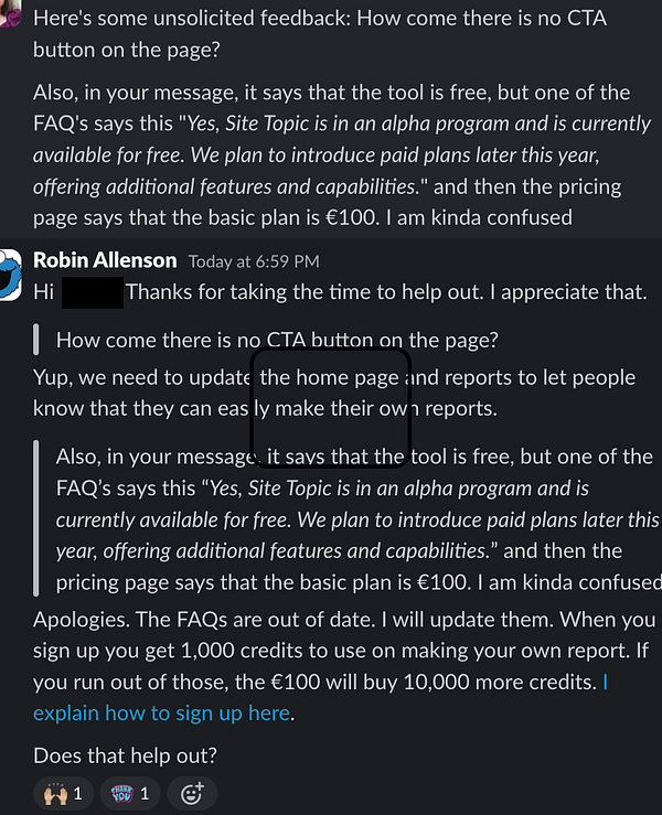 Updated homescreen to add a CTA and explain how free reports & paid plans work (on dev; should release later in the weekend).