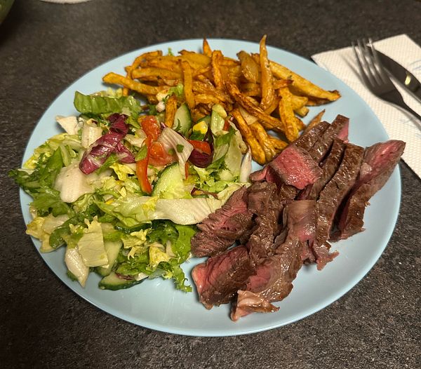 cook stake with fries and salad at home #yeschef