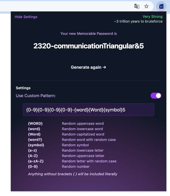 Improve memorable password chrome extension