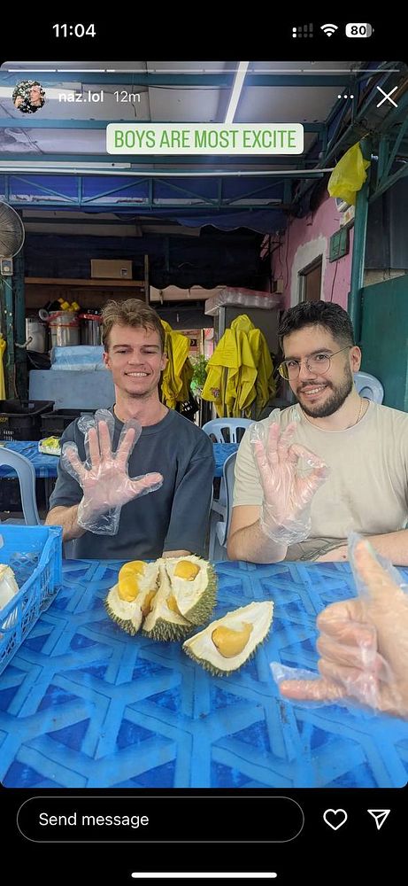 <backdate 2 days ago> have Durian with @alexstyl and @nazavo #life