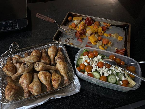 make airfryer chicken, oven veggies and salad #life