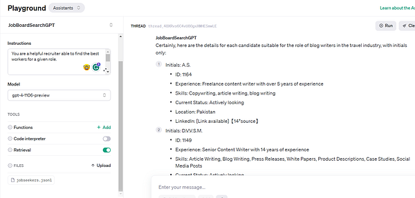 Upload file with workers data to JobBoardSearchGPT assistant and see resutls #jobboardsearch