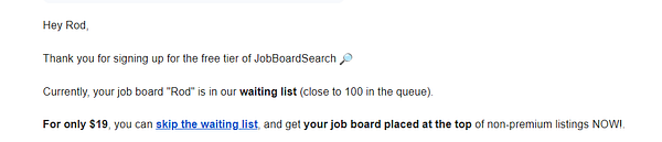 Add Stripe link to welcome email for job boards submitted on the free tier #jobboardsearch #jobboardsearch