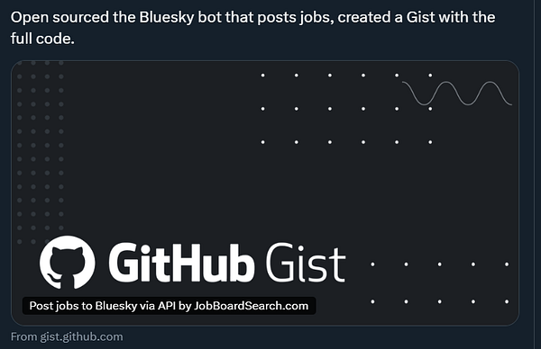 Open source the Bluesky jobs bot x.com/rrmdp/status/1860016198… #jobboardsearch