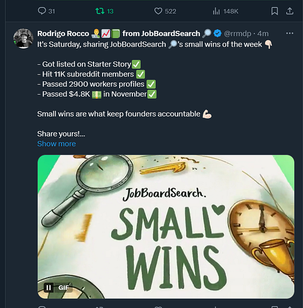Share Small Wins of the week x.com/rrmdp/status/1862836220… #jobboardsearch