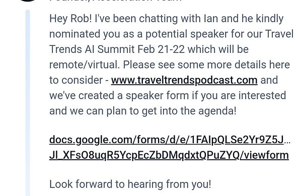 Get offer to be a speaker at the Travel Trends AI Summit #life