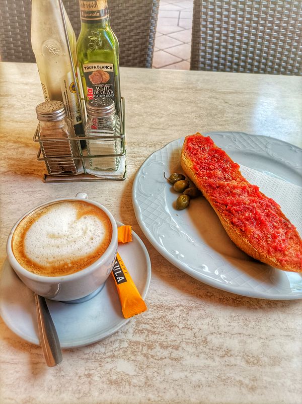 Have white coffee and mushed tomato on toast with friend #life
