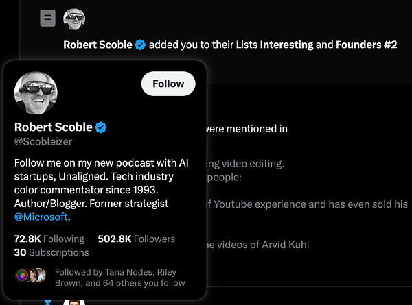 Checked X notifications and got surprised to be added to Robert Scoble's lists #life