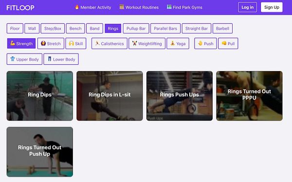 Add stretch / strength / skills filter to exercises page