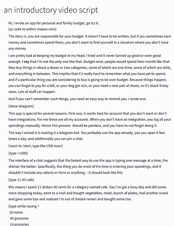 Write a script for an introductory video (took me only a year and a half).